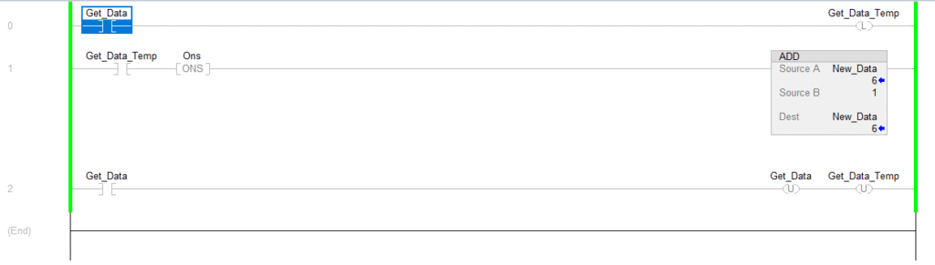 Step 2 – One Shot (ONS) Detects Rising Edge